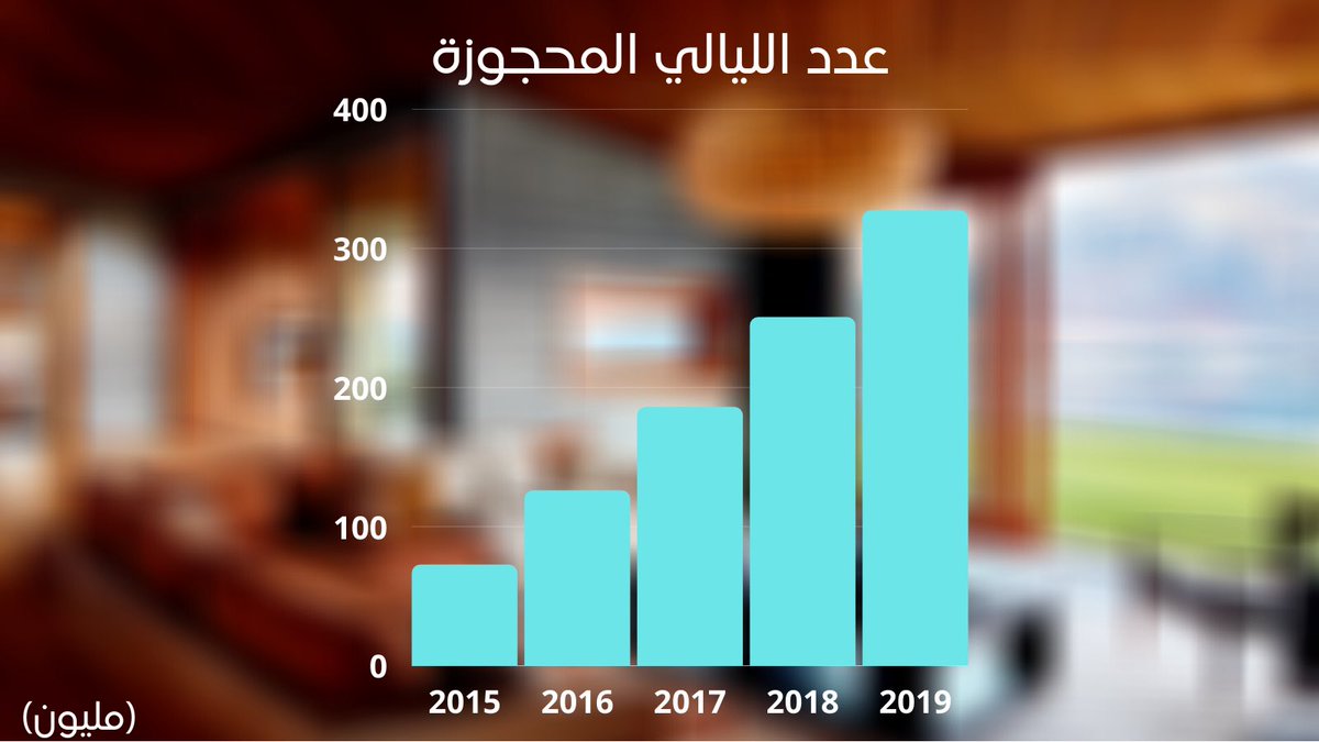 عدد الحجوزات التي تمت عن طريق الموقع تضاعف ٤.٥ أضعاف، من ٧٢ مليون في ٢٠١٥ إلى ٣٢٦ مليون في ٢٠١٩.