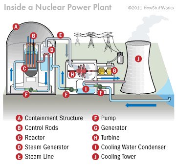 لا تختلف محطات الطاقة النووية عن المحطات التي تستخدم الفحم لتوليد الحرارة في هدفهما، فكلتا المحطتين هدفها تسخين الماء ليتحول إلى بخار ثم تدوير التوربينة لتوليد الكهرباء ومن ثم تبريد البخار ليعود إلى الحالة السائلة، ويتم توليد الحرارة في المحطات النووية بالطريقة الآتية: