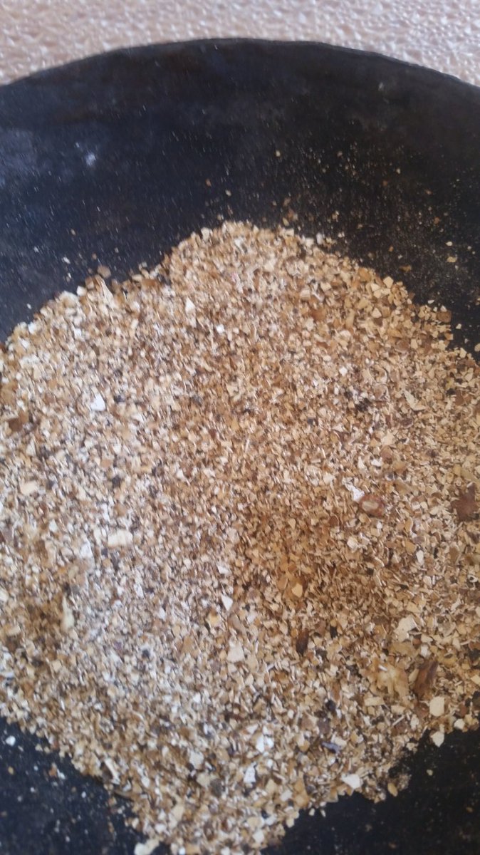*نقوم بتحميص قشور البيض على نار هادئة إلى أن يتحول اللون من الأبيض إلى الذهبي وشوي محروق تقريبا 8 دقائق ويجهز