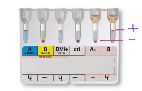 باخذ ثلاث قطرات من دم المريض وبحط على وحده anti-A والثانية anti-B والثالثة anti-D