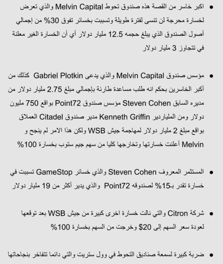 ابتدأت القصة بشركة اسمها GameStop لديها محلات بكل مكان لبيع ألعاب الفيديو، وهي ممن تضرر كثيرا بكورونا والحظر المنزلي، ومنافسة الأمازون.