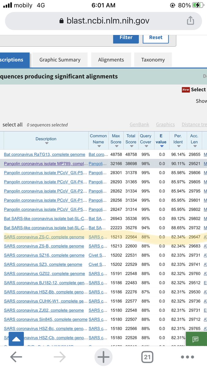 اللي عملته اني استبعدت اي تشابه لتسلسل الجيني لنفس الفايروس في نفس الكائن، يعني كل تسلسل جيني لفايروس كورونا يصيب الانسان بيستبعده، لكن اللي يصيب الخفاش مثلا بيضعه لي وهكذا، الان هذه النتيجة النهائية تظهر لي