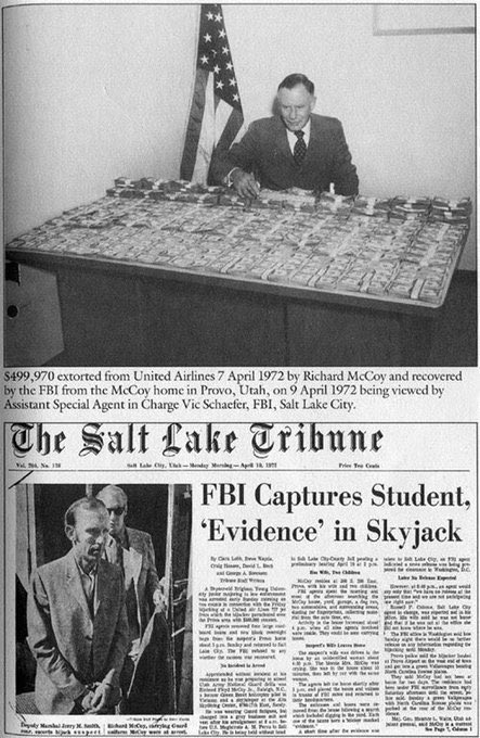 واستكملت الطائرة رحلتها إلى رينو مرة أخرى، وفجأة قفز كوبر عن الطائرة تاركاً خلفه الباراشوت وربطة عنق ومشبك وبعد بحث طويل لم يتم العثور على كوبر وبعد مرور سنوات عديدة من إجراء التحقيقات تم العثور على سند مالي بقيمة 5880 دولار على ضفة النهر ولم يتم التعرف على هوية السارق أبداً.