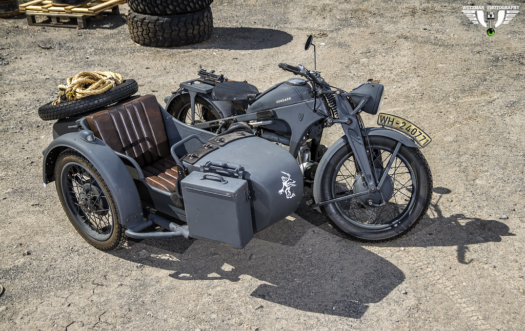 دراجة نارية ألمانية تحمل شخصان و مسلحة برشاش