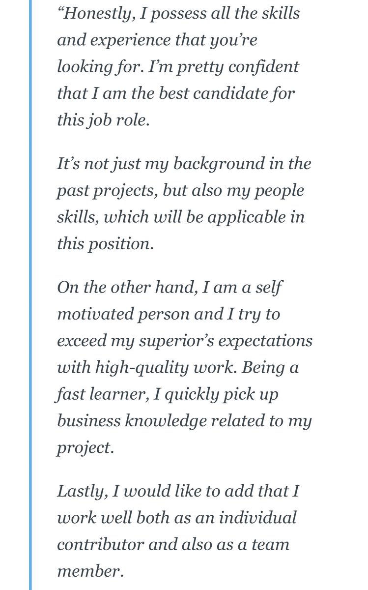 ودائما تذكّر ان فيه غيرك مئات المرشحين اللي كل واحد فيهم بيقول الاجابة بطريقة تقليدية مملة.