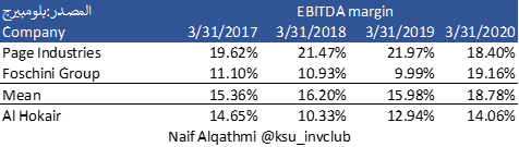 لعدم توفر شركات عامة ذات نموذج اعمال مقارب للحكير فتم اختيار شركتين عالميتين للمقارنة فقد وقع الاختيار على شركتي Foschini Group و SOU YU TE وتقدر القيمة السوقية لكل منهم بمايقارب 4.3 مليار ريال و 4.75 مليار ريال على التوالي مقارنة بالحكير فقيمتها السوقية تقارب 4 مليار ريال