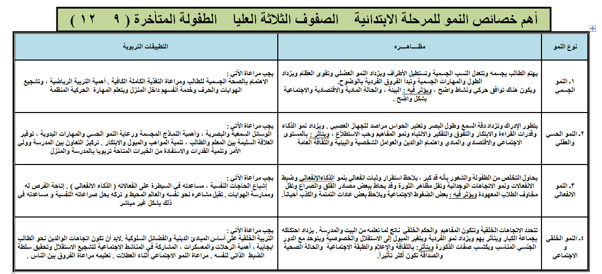 تشمل مرحلة الطفولة المتأخرة :
