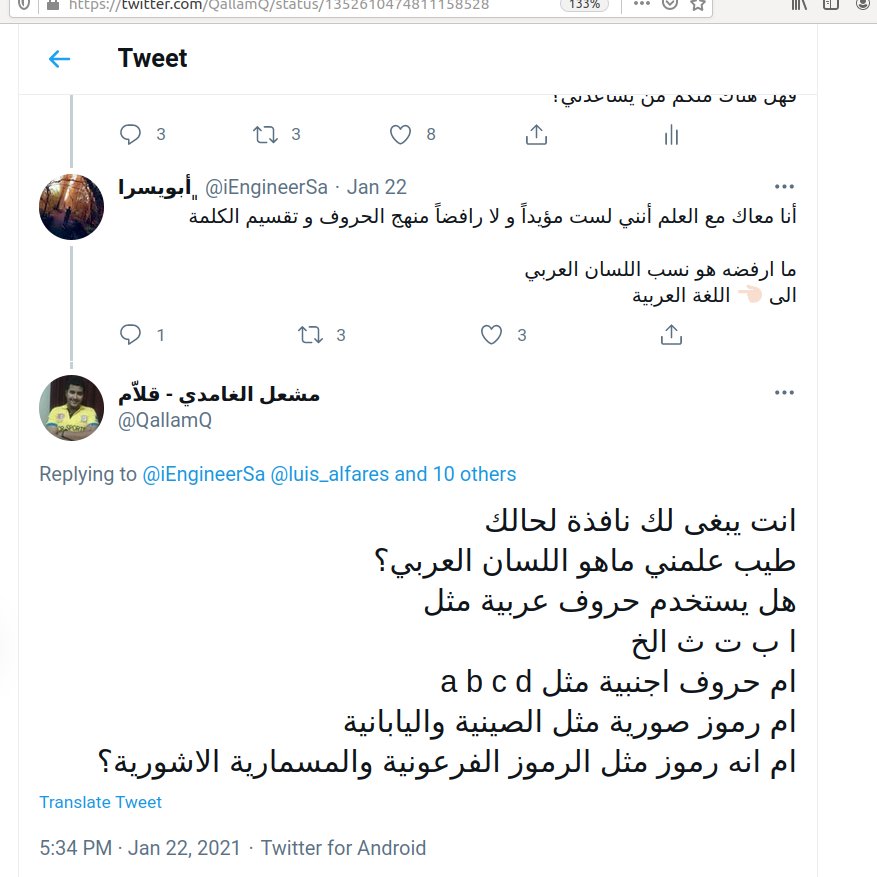 هذا لم اجبه انا، الاجابة التالية ليست اجابتي وانما اجابة صديق لي يعمل كمهندس اسمه عمر محمد اقبال الذي لا يتحدث العربية، ثم تحدثها واجادها: