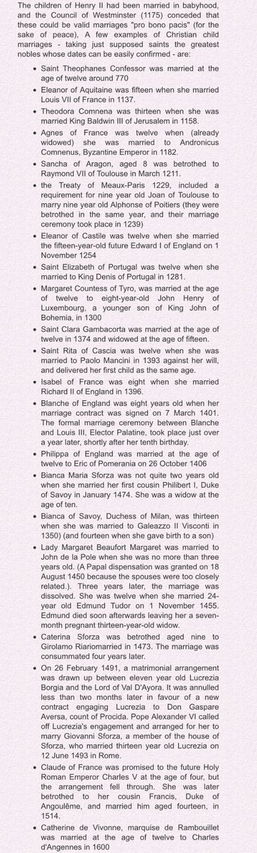 يقول:من المهم أن يُفهم أن العديد من الأرامل في القرون الوسطى لم يكن في سن كبيرة وأهم الوارثات كن قد تزوجن مابين سن الخامسة إلى العاشرة ليجدن أنفسهن أرامل في سن المراهقة