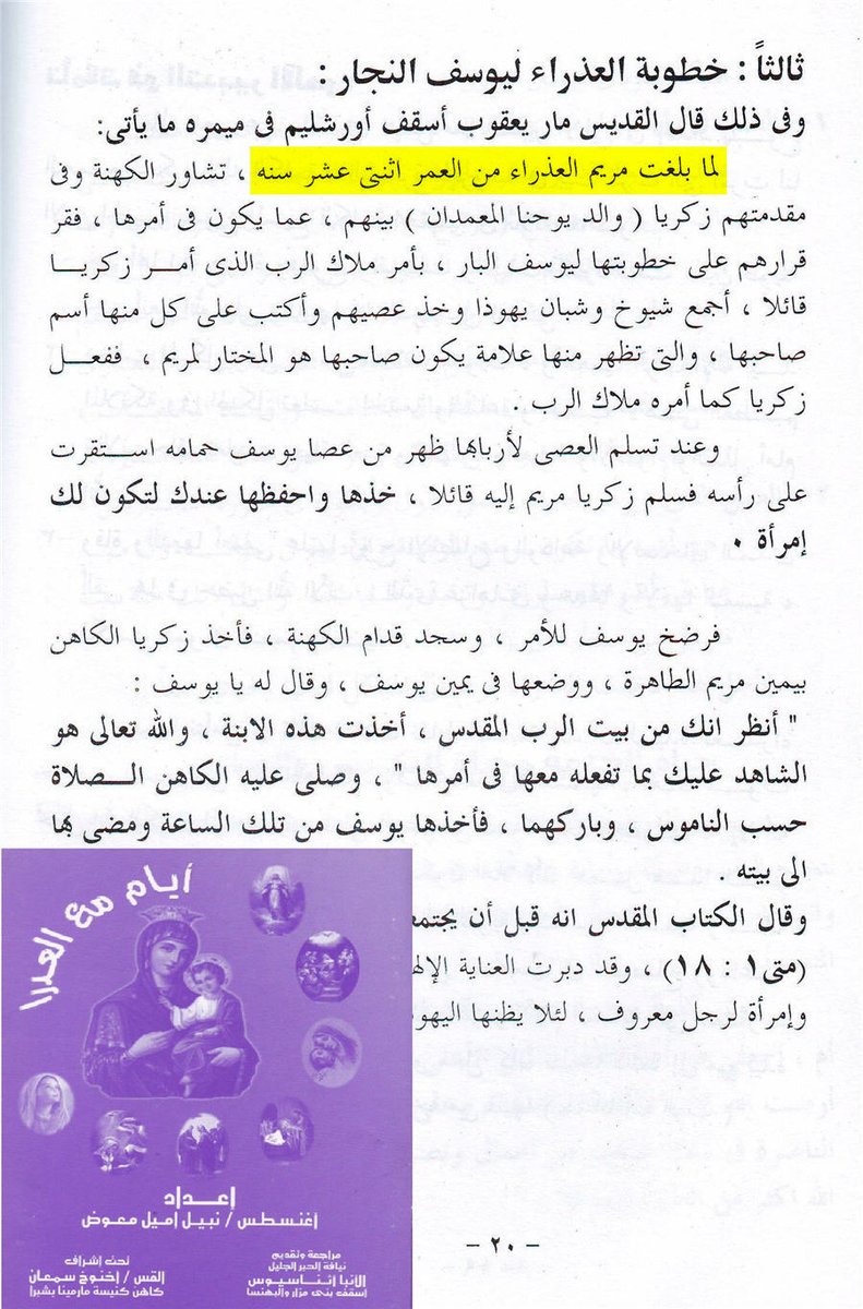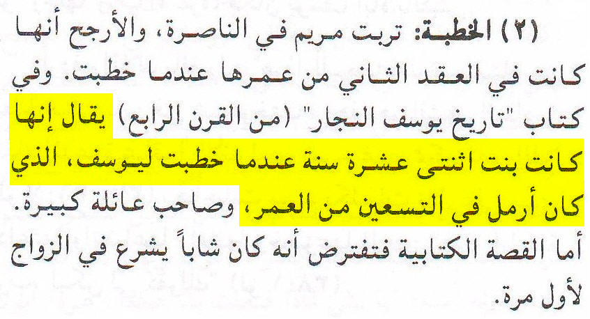 تخبرنا المراجع المسيحية أن مريم ولدت يسوع وهي بعمر 12 سنة بينما خطيبها يوسف النجار كان في الـ 90 من عمره