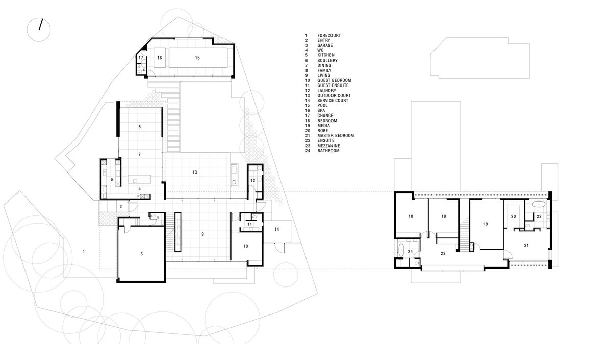 في هذه اللقكتين لاحظ يا عزيزي علاقة الفراغات الداخلية بالفناء وكيف تتصل به وكأنه جزء منه دون حجب للرؤية أو تدمير للعلاقات الوظيفية