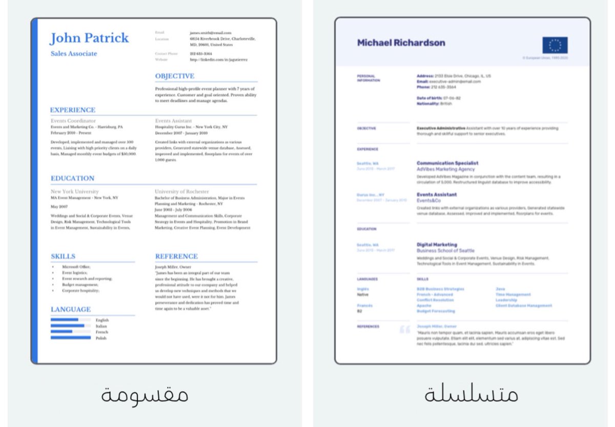 📍حيلة بسيطة اعتمدها في #السيرة_الذاتية اذا كنت خريج حديث و خبراتك ودوراتك قليلة إعتمد السيرة المتسلسلة، اذا خبراتك جيدة اعتمد على السيرة المقسومة