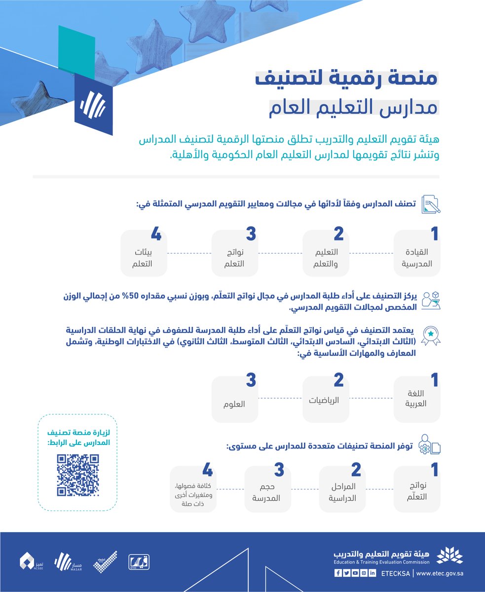 #هيئة_تقويم_التعليم_والتدريب تطلق "منصتها الرقمية " لتصنيف مدراس التعليم العام في المملكة العربية السعودية .. وتنشر نتائج تقويمها للمدارس الحكومية والأهلية.