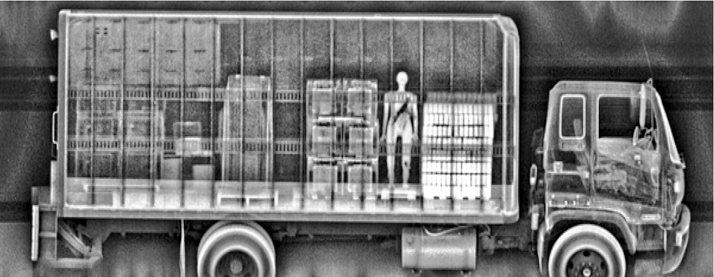في الحاوية ويتم الاعتماد على أشعة جاما على نطاق واسع لقل التكلفة نسبيا حيث يمكن عـن طريقها مسح وتأمين الحاويات الفارغة بمعدل عال وتصوير الشكل العام للبضائع وتوضيح الأشـياء الغريبة في #الحاويات .