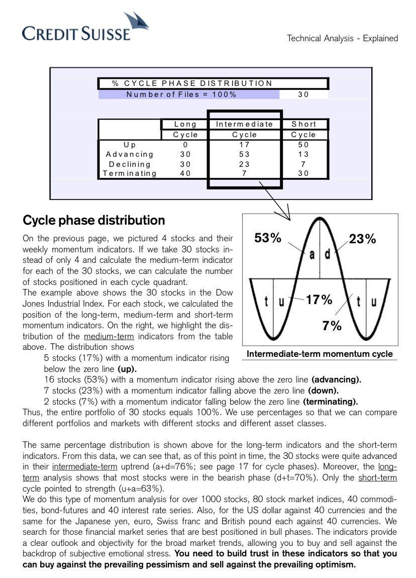 تحليل الزخم لعدد كبير من الأسهم والهدف البحث عن سلاسل الأسواق الماليه وتساعد لمعرفة إتجاه السوق وفي المثال ١٧٪ مرتفعه تحت خط الصفر ٥٣٪ مرتفعه فوق خط الصفر ٢٣٪ منخفضه فوق خط الصفر ٧٪ منخفضه تحت خط الصفر