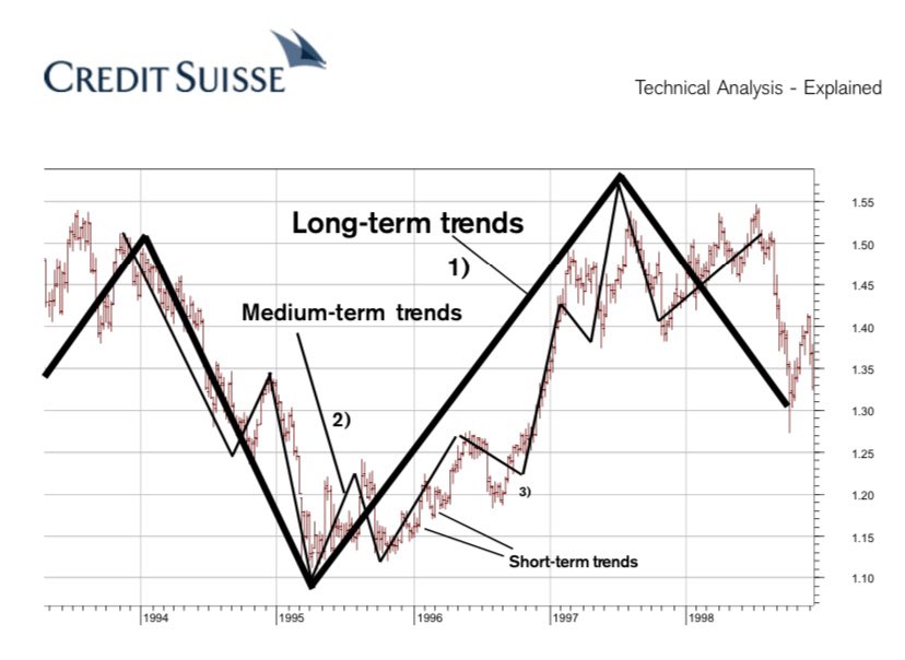 أهمية التمييز بين الإتجاه طويل المدى تمثله (الساعات) من ١٢ إلى ١٨ شهر والإتجاه متوسط المدى تمثله ( الدقائق) من ٣ إلى ٦ أشهر والإتجاه قصير المدى تمثله ( الثواني ) من ٢ إلى ٦ أسابيع