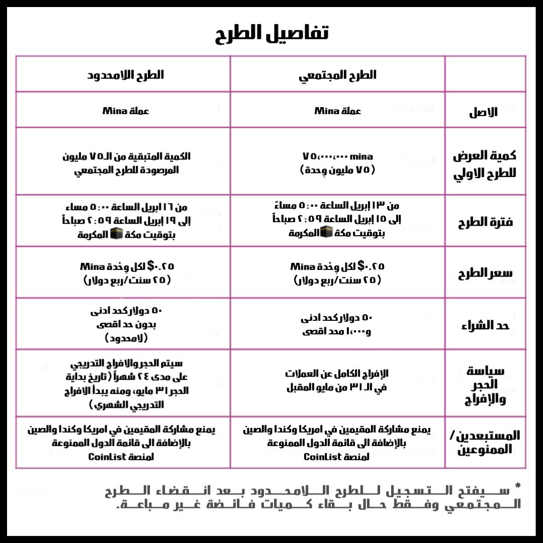 - الطرح الاولي للعملة $MINA جاء بعد تدشين الشبكة الرئيسية، يعني ادارة المشروع اوفت بأحد اهم الوعود للمستثمرين قبل استثمارهم، مع التأكيد انه مجرد جانب مهم ولا يعني ان المشروع مكتمل! بل لازال مشوار تطوراته للتوسع في بداياته