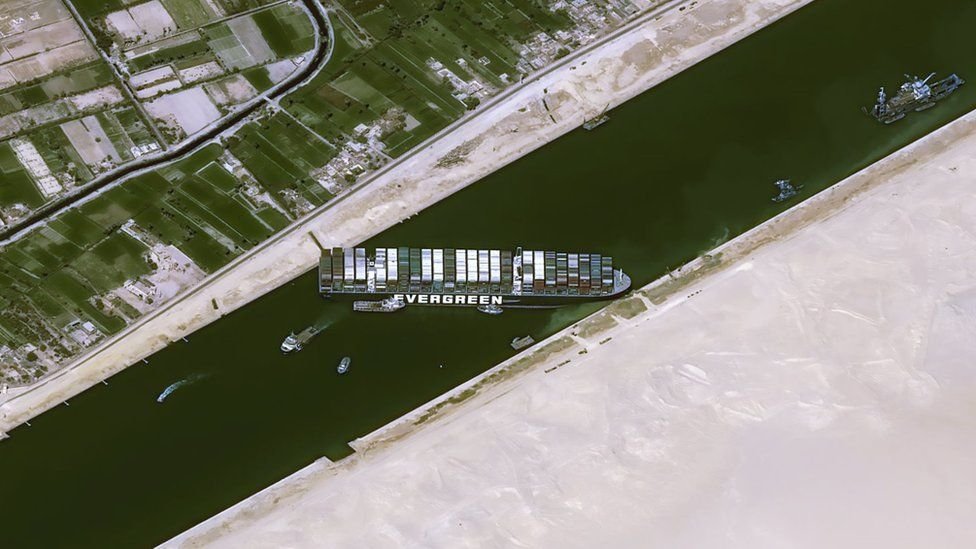 لعلها الصور الاكثر انتشارا في هذه الاثناء, حادثة السفينة الجانحة في قناة السويس