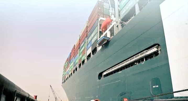 تتخيل سفينة طولها ٤٠٠ معترضة في قناةةعرضها يساوي عرض السفينة وهو ٤٠٠ متر ما ادى لجلوس السفينة بمقدمتها ومؤخرتها على جانبي القناة وعلقت مازاد الامر سوء ان علقت بالطين مع العلم ان مقدم ومؤخر السفينة هم اساسا مناطق العمل والرباط مع #القاطرات_البحرية التي تقوم بمناورات ✨⬇️