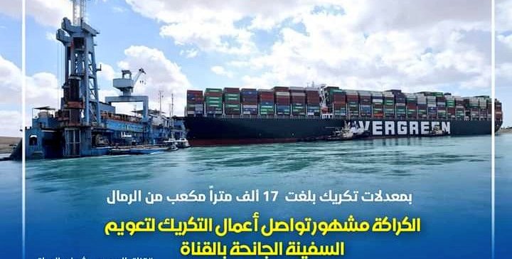 وإستمرار تفويج السفن عبر ممر واحد لحين اعادة تعويم السفينة وإستئناف اعمال الفرع الثاني من #القناة_الملاحية الثانية