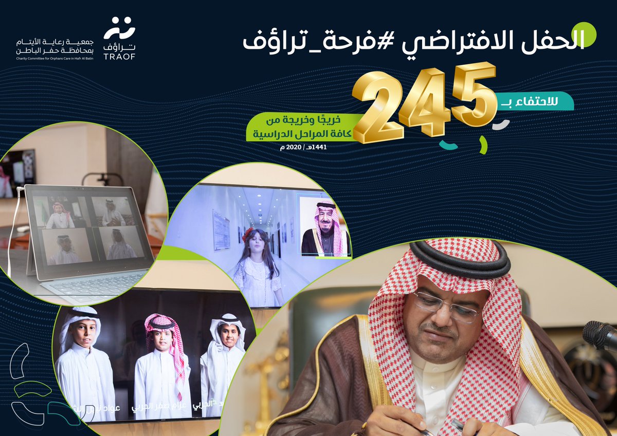 كنا ولازلنا نؤمن بأهمية الاحتفاء بالخريجين من أبنائنا وبناتنا ليستمروا في مسيرة التميز والعطاء , ولأننا نؤمن بالتحديات فقد أقامت #تراؤف حفلًا افتراضيًا لـ 245 خريجًا وخريجة برعاية سمو محافظ حفرالباطن الأمير منصور بن محمد بن سعد آل سعود