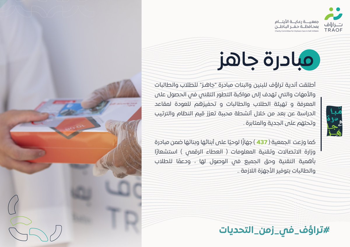 واكبنا التقنية التي كانت سلاحًا واجهنا به الجائحة , وكانت والوسيلة التي مكنت أبنائنا من الاستمرار على التعلم والحصول على المعرفة , فأطلقنا ( مبادرة جاهز ) لتحفز الأبناء للعودة لمقاعد الدراسة عن بعد من خلال أنشطة محببة تعزز قيم النظام وتحثهم على المثابرة