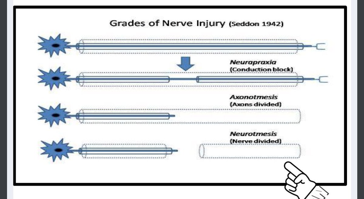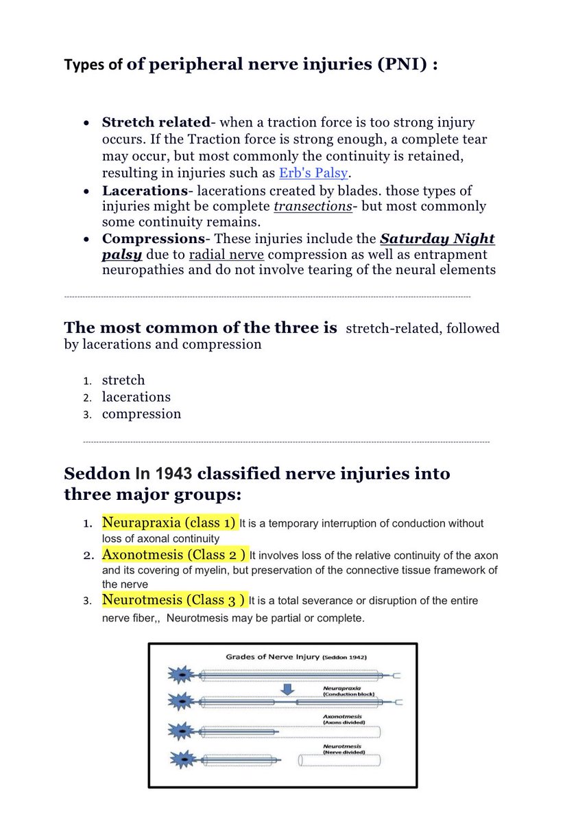 في البداية راح نتكلم عن انواع الاصابات الي تحدث في الاعصاب الطرفية وتعريفها ،،، يعني بعيد عن الحبل الشوكي وتكون مثلا في Radial nerve الخ...