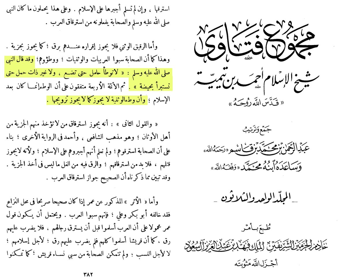 المشاركات في القتال فقط للتكافؤ لأن الخصم يسبي وشرع حيالهم(المن/ اطلاق)و(الفداء/ مبادلةبسبي الخصم)(فإما منا بعد وإِما فداء) و(المكاتبة/ تحرير بمال)(والذين يبتغون الكتاب مما ملكت أيمانكم فكاتبوهم)مش اعتصاب انما لضمان سلامة أهلنا من اجرام #العلمانيين
