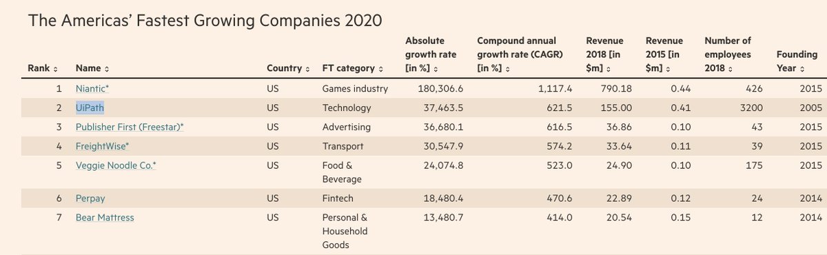 حسب الفاينانشال تايمز ، @UiPath تعتبر ثاني اسرع شركة نمو بين ٢٠١٥-٢٠١٨ ( تم نشر الخبر في ٢٠٢٠)