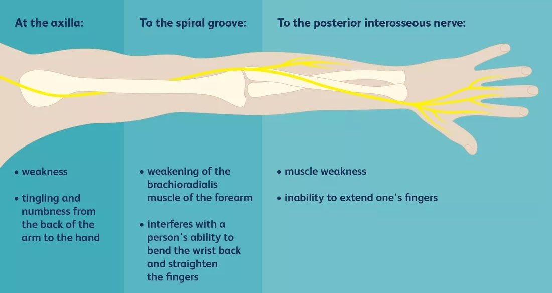 ومعظم هذه الأنواع تقدم نوع من الركيزة لتمديد الأصابع والإبهام مع جذب مرن بينما تسمح بحركة كاملة لانقباض فعال. هذه الجبائر ليست ضرورية عند كل المرضى المصابون بشلل العصب الكعبري، حيث تختلف احتياجات كل مريض وعليه اختيار نوع التجبير المستخدمة ؛ لا ينبغي وصف الجبيرة نفسها لكل مريض.