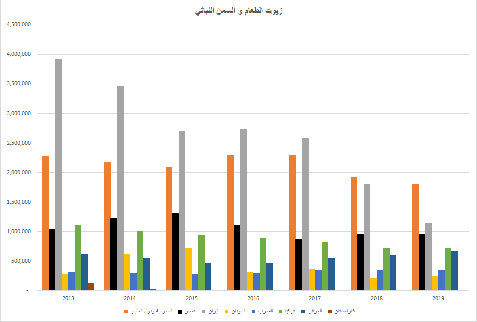 -زيوت الطعام :لازالت تسجل هبوط حاد وذلك بسبب تغير سعر الصرف في السوق الايراني والتركي فقد تسبب ذلك بهبوط في المبيعات يصل الى 4.2 مليار ريال سعودي من عام 2013 الى عام 2020 , بالاضافة الى المنافسة