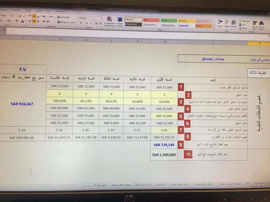 ولكن بعد حسبة طريقة التدفقات النقدية المخصومة اتضح ان سعر العمارة الحقيقي ٧٢٩ الف 🏢