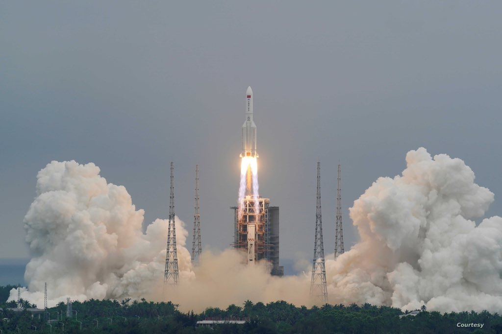 6- وأطلقت الجزء الأساسي للمحطة على متن الصاروخ (لونغ مارش 5 بي) وتسعى لتأسيس محطتها الفضائيه { سي أس أس } .
