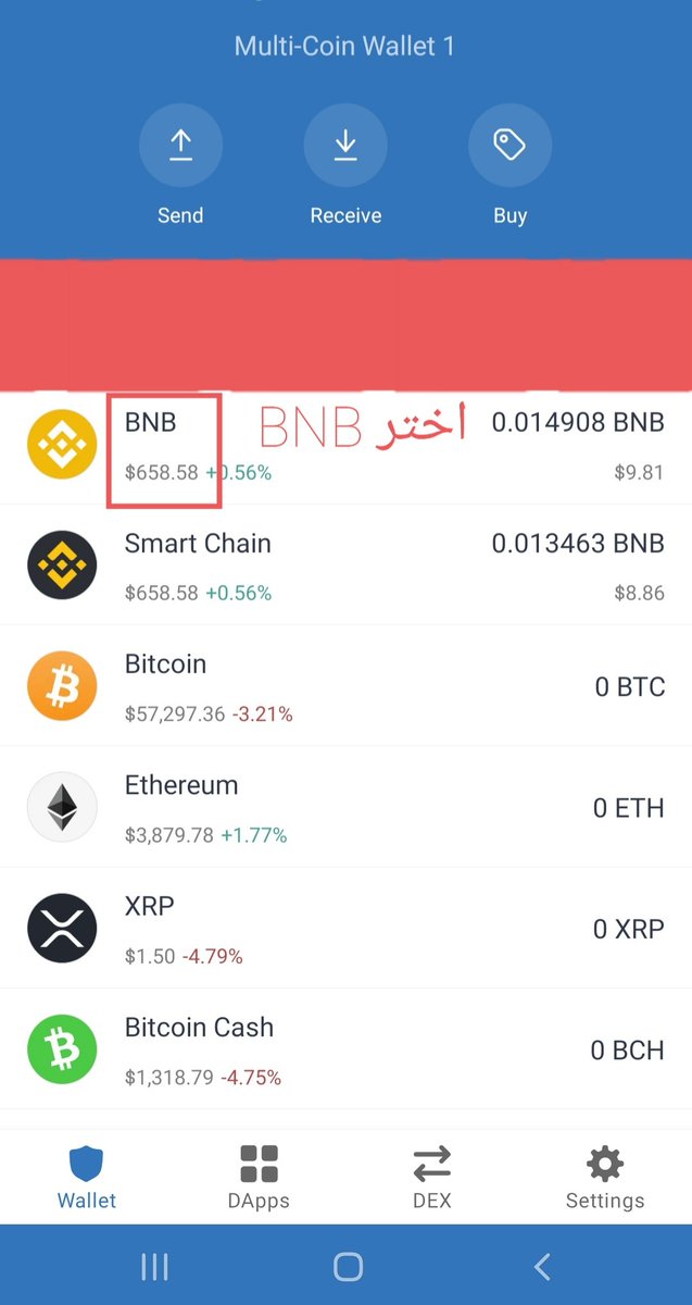 بعد عملية انشاء المحفظة، الان يجب علينا تحويل عملة #BNB الى محفظة #TrustWallet عن طريق منصة بايننس #Binance