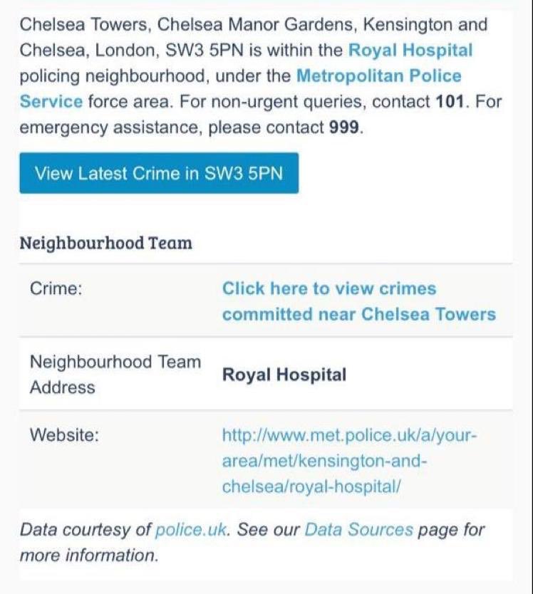 ما عليك الا ان تضع رقم الرمز البريدي للسكن او اسم الشارع كما وجدته في Zoopla أو rightmove وراح يعطيك المعلومات التالية عن المنطقة