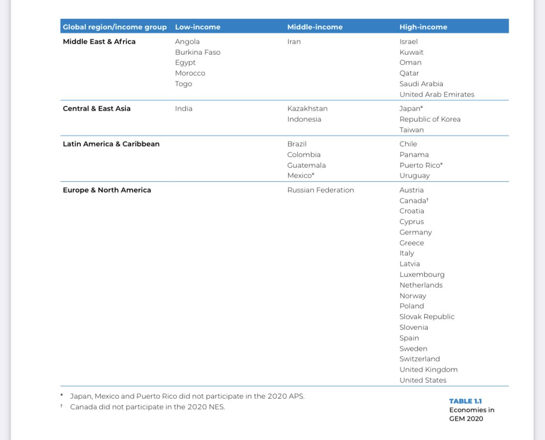 التقرير شمل 4 مناطق رئيسية في 43 دولة كانت حالة #ريادة_الاعمال بلاشك في تفاوت كبير، اتفق الجميع ان منطقة #الشرق_الاوسط اكثر المناطق مثيرة للاهتمام خاصة مع التحولات الكبيرة، خاصة التحولات والانشطة الايجابية في السوق السعودي لدعم #ريادة_الاعمال وتحسين البيئة المؤسسية بشكل مستمر.