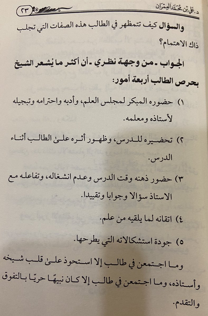 نُصبح في ثالث يوم من #العيد على هذا الكتاب المميز في عنوانه الرائع في بابه المشوق في مواضيعه #سلوة_الطالب للشيخ الفاضل علي العمران @a_alemran وسوف أذكر بعض الفوائد المنتقاة والدرر الملتقطات من ثنايا هذا الكتاب .