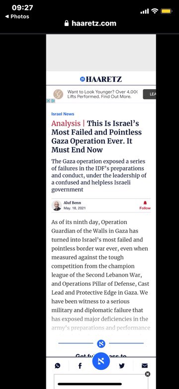 🚨إهانة وكسر هيبة جيش وقوات الاحتلال التي فشلت حسب جنرالات ومحللين بتحقيق أهدافها-كالكاتب الوف بين وصف في هارتس:"عملية #غزة أكثر حرب فاشلة-وبلا معنى.فضحت سلسلة اخفاقات التحضير والتنفيذ حكومة متخبطة وبائسة الجيش.ويجب وقف الحرب."تقويم واقعي لكاتب إسرائيلي وليس بوق عربي مبرر ومطبل🧐