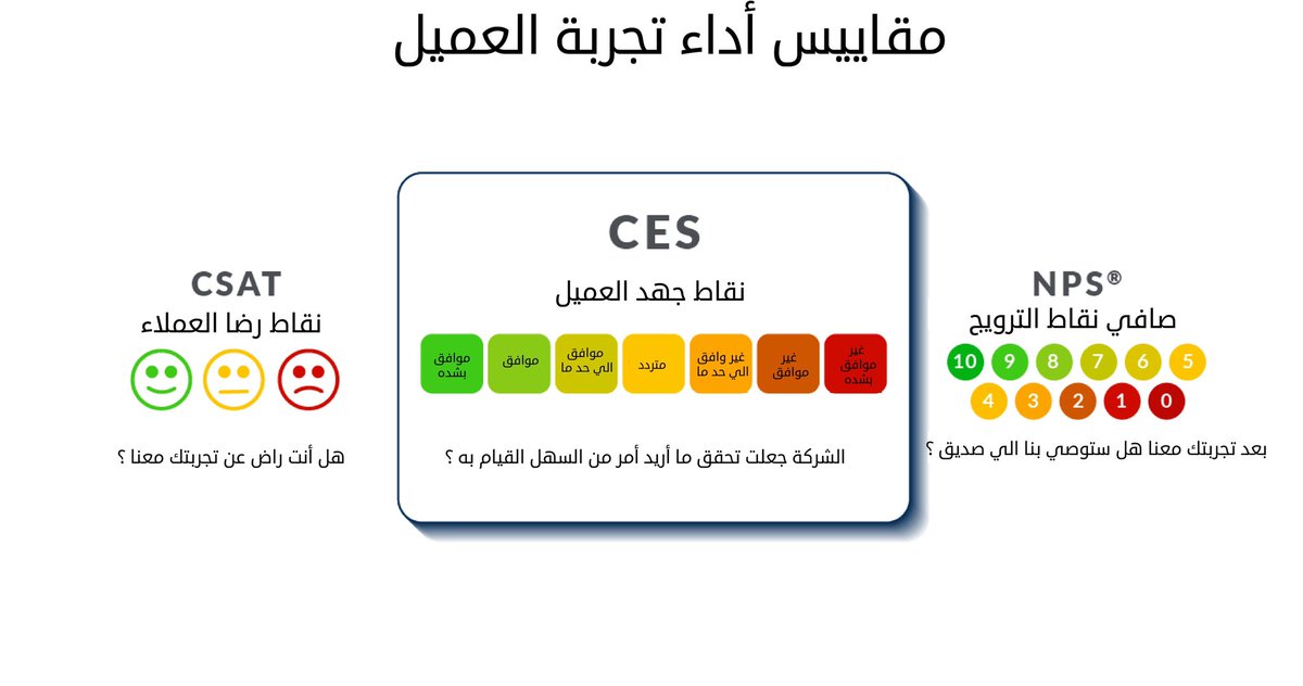 عشان مايكون الموضوع نظري هذي ٣ مقاييس تقيس من خلالها مدى نجاح تحربة العميل لديك.