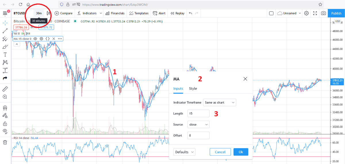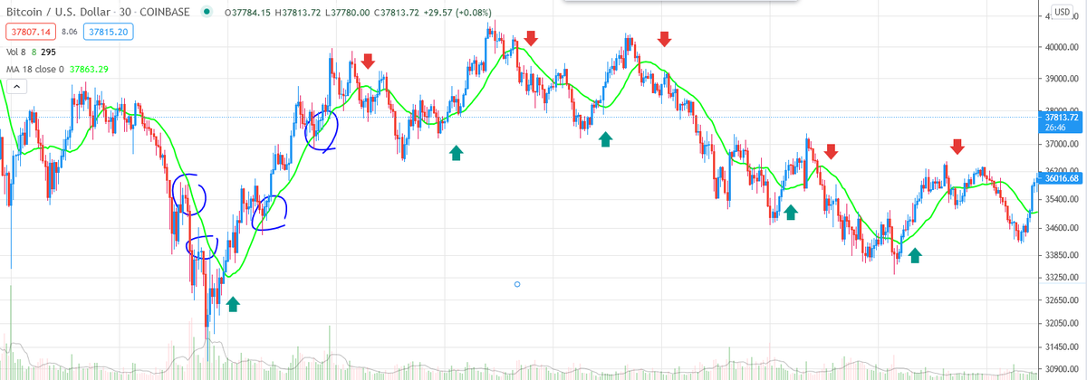 في هذا المثال أخترت عملة #البيتكوين على فترة نصف ساعة.