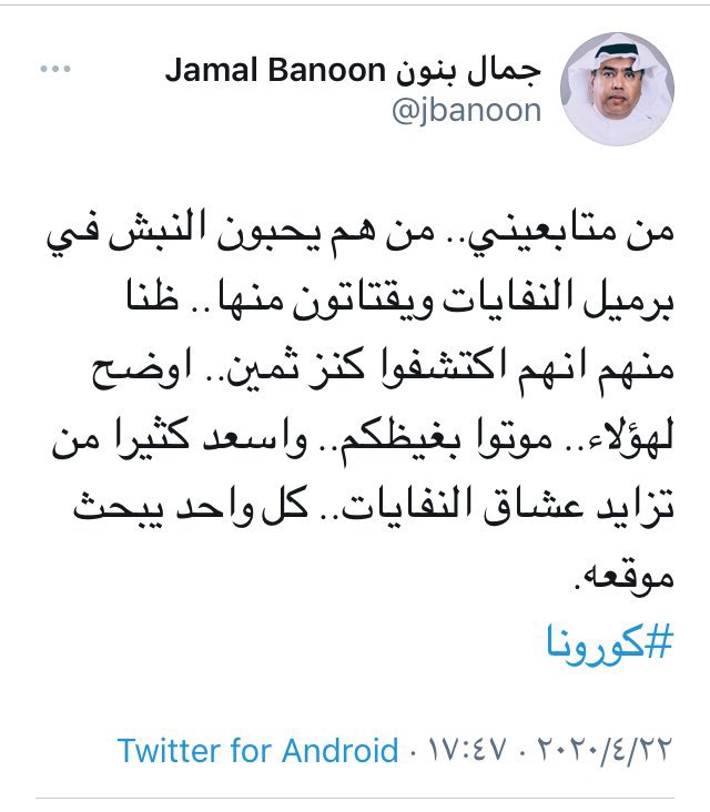 في كل مرة يقوم المغردون بكشف تغريدات اي مخالف يقوم #فارس_حزام مدير #قناة_الإخبارية باستضافته مباشرة كما حدث مع المجنس #جمال_بنون فما السبب ؟؟