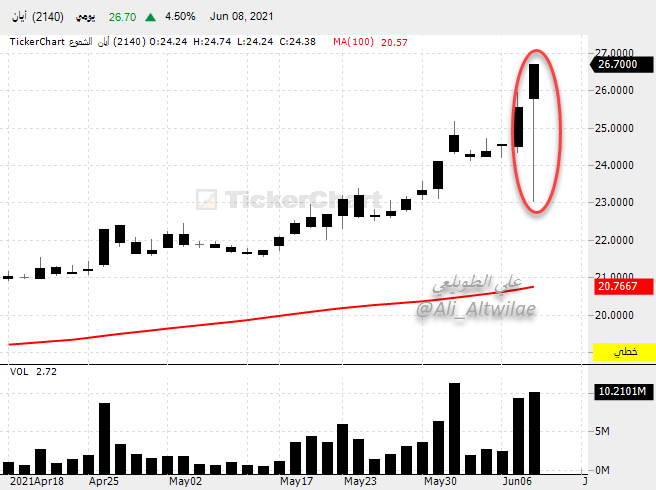 اليوم في أخر ساعة من تداولات اليوم حصلت تذبذبات عالية جداَ في كثير من أسهم السوق خصوصاَ الأسهم بعضها مدى التذبذب اليومي خلال تداولات اليوم تجاوز 14% تذبذب من أدنى سعر الى أعلى سعر