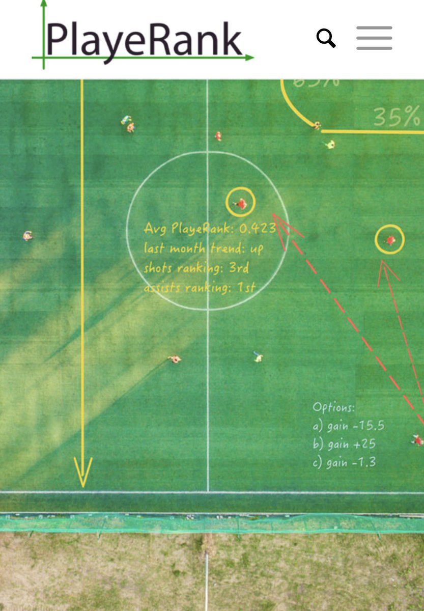 انشأت موقع PlayeRank لمحاولة تحديد القيمة السوقية العادلة إلى لاعبين كرة القدم يقوم عليه مجموعة من المختصين بتحليل البيانات لمحاولة القيام بمصفوفة رياضية لكل لاعب حسب اداءه و قرارته بالملعب