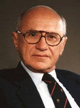 ميلتون فريدمان:هو عالم اقتصاد أمريكي فاز بجائزة نوبل في العلوم الاقتصادية عام1976لإنجازاته في تحليل الاستهلاك والمعروض النقدي ونظريته في شرح سياسات التوازن هو من القادة الفكريين للجيل الثاني من جامعة شيكاغو قسم علم الاقتصاد، وكلية الحقوق وكلية الدراسات العليا.