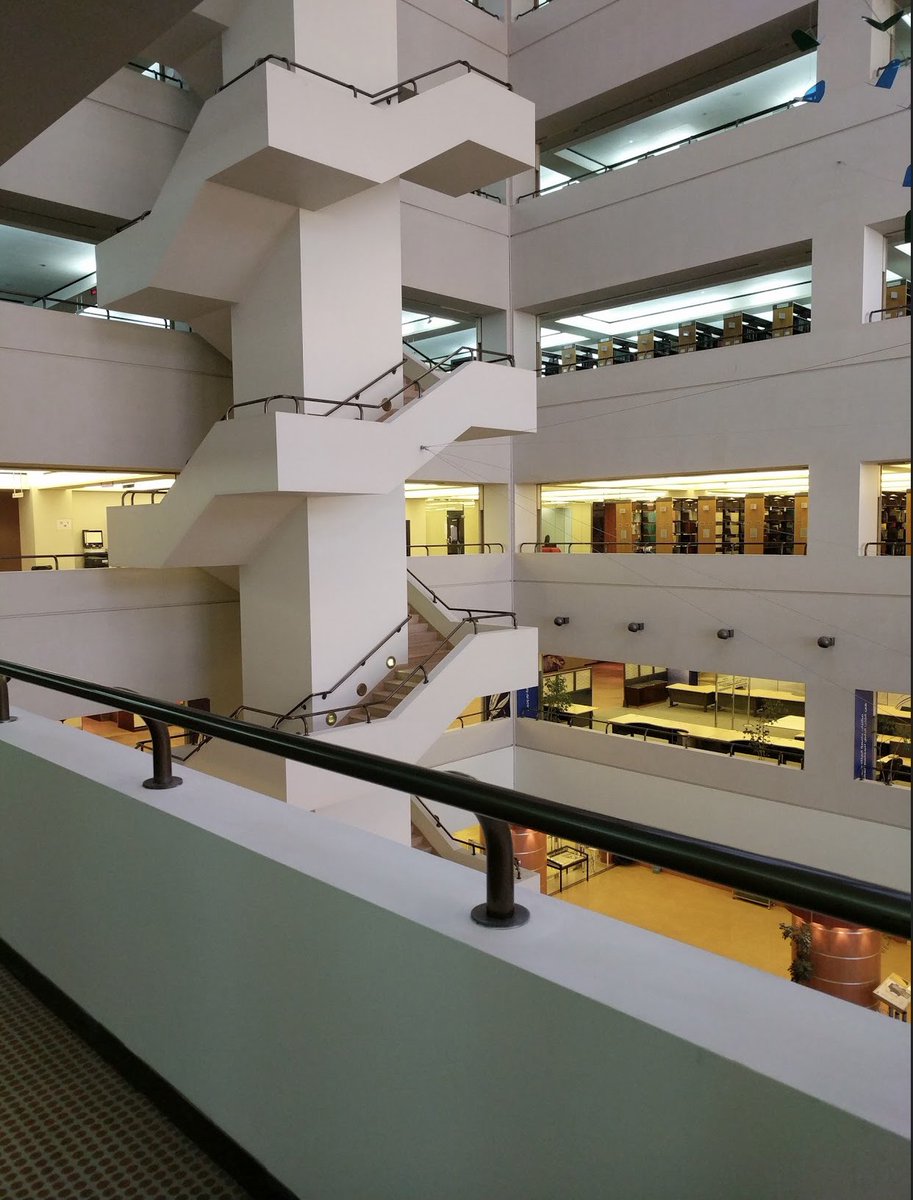 (الجامعة المركزية بجامعة الأميرة نورة بنت عبدالرحمن ) المبنى تحفة من الداخل وهادئ للعمل والقراءة، فيها عدة أدوار وقاعات مليئة بالكتب والكراسي المريحة.