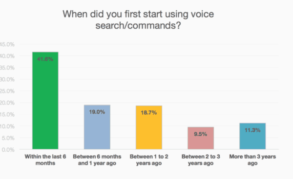 عادةً ما يستخدم الأشخاص الأسئلة أكثر مع البحث الصوتي ، حيث يتم برمجة المساعدين الصوتيين للرد عليها بدلاً من التأكيد. على سبيل المثال: