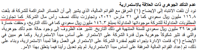 وعليه فإن الشركة ستُقدم بلا شك في قادم الأيام على خفض رأس مالها ومن ثم رفعه من خلال طرح أسهم حقوق أولوية