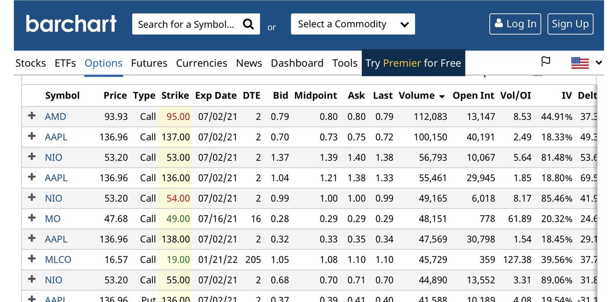 الحركة الغير معتادة على عقود الاوبشن بحيث يصبح حجم التداول على عقد او عقود معينة اضعاف الحجم العادي قد تصل الى ٥ او ١٠ اضعاف الحركة العادية