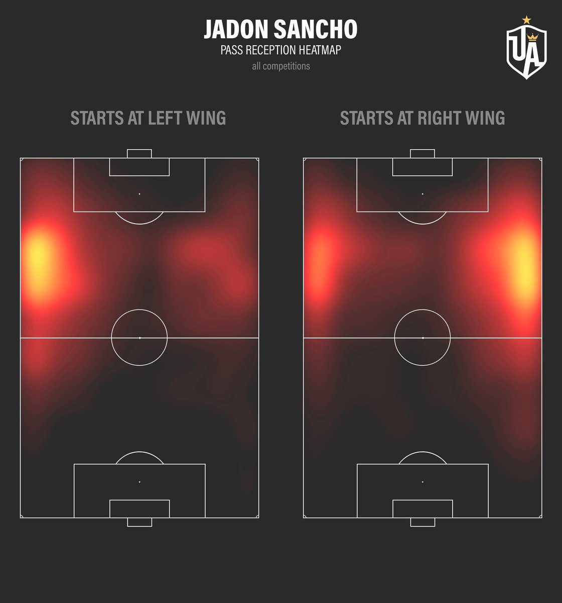 سانشو لاعب مختلف عن اجنحة الفريق ماهو هداف ولاعب ذو انتاجيه تهديفيه والتسجيل هو خياره الاول..لكن في صناعة الفرص يُعد واحد من الأفضل بأوروبا.