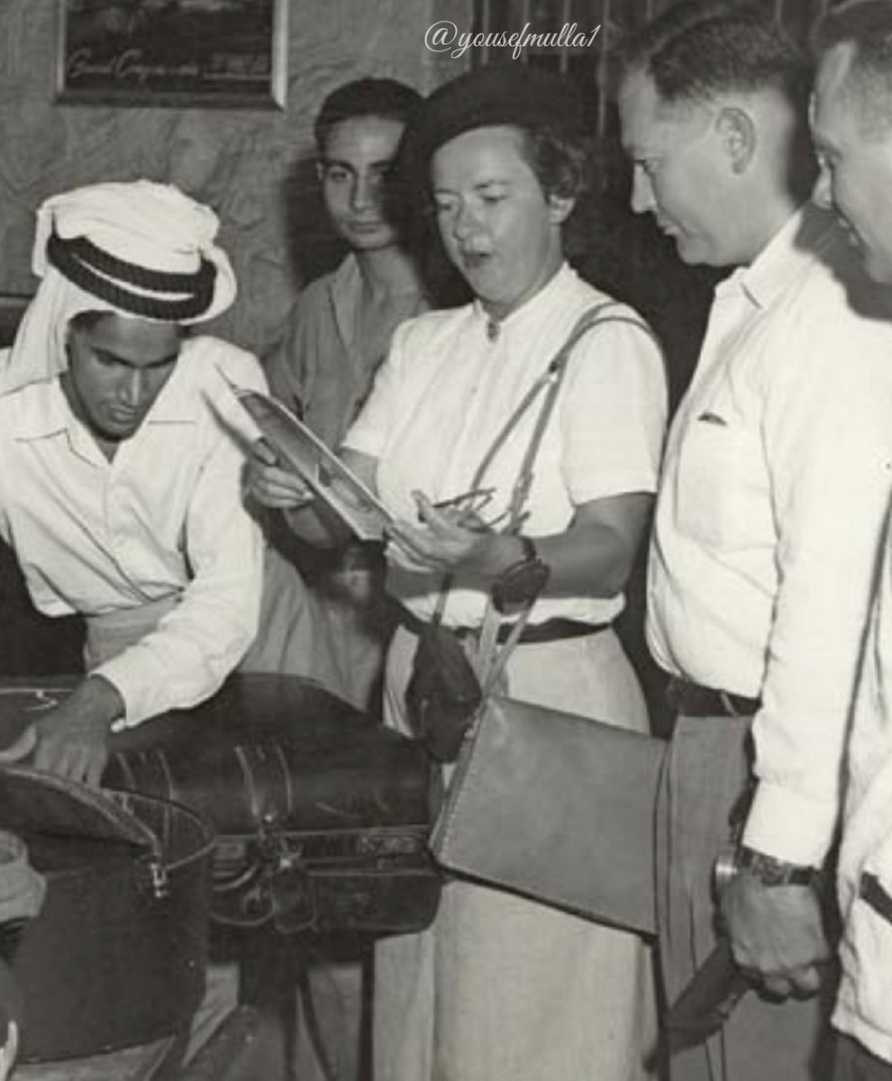 موظف في جمرك مطار الظهران يفتش حقائب عدد من موظفي #ارامكو الجدد، في الخمسينيات الميلادية.